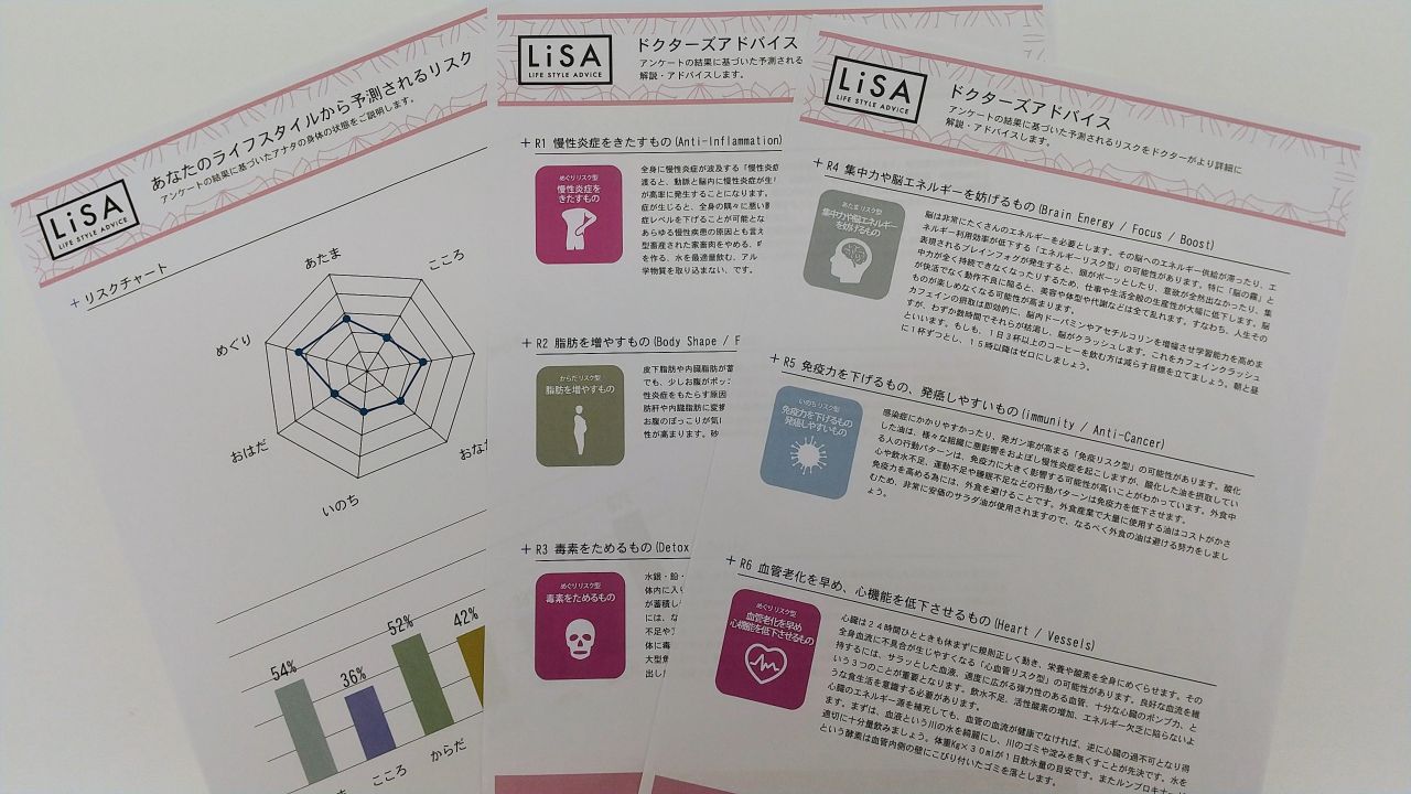 生活習慣や食生活などのアンケートに答えると現在の体質や健康状態の分析レポートが貰えてアドバイスを頂けます。