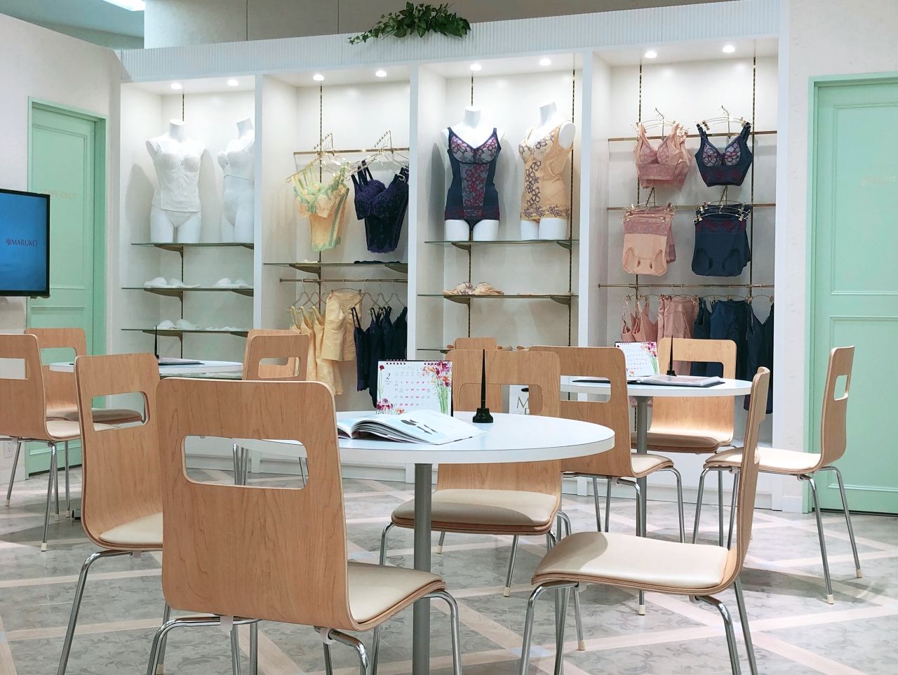 アイスグリーンとホワイトを基調とした落ち着いた店内