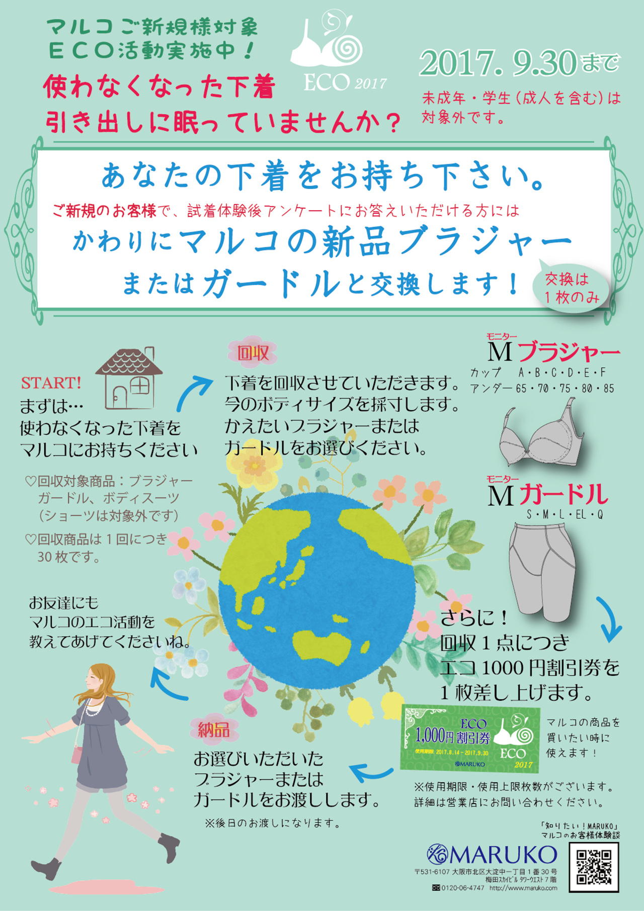 不要な下着をお持ち頂きMARUKOの無料試着体験をすると、体にあったブラジャーorガードルがプレゼント★