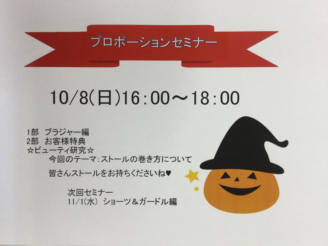 今月のプロポーションセミナーについてお知らせさせて頂きます♪