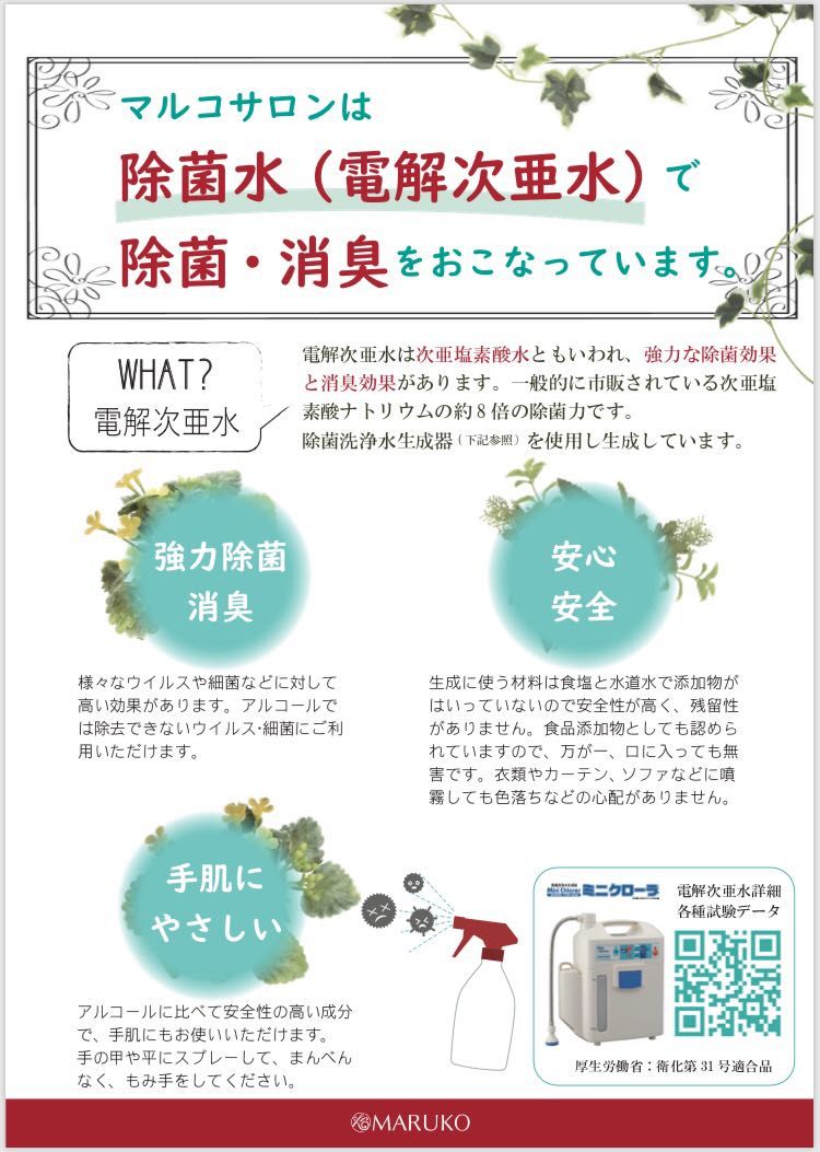 感染対策をしっかりしてお客様をお迎えしておりますので、安心してご来店下さい。