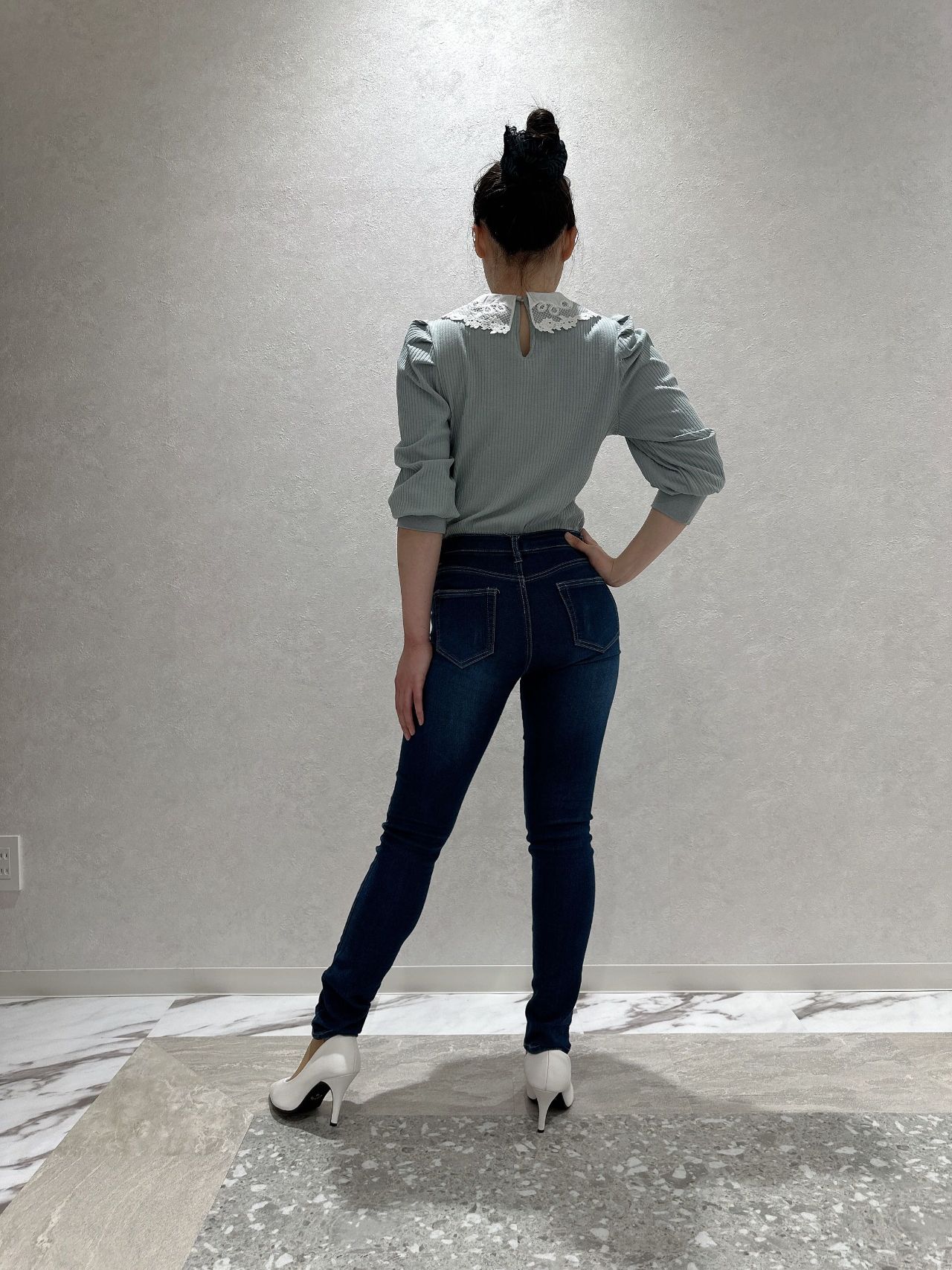 スキニーパンツを履きこなしている事が