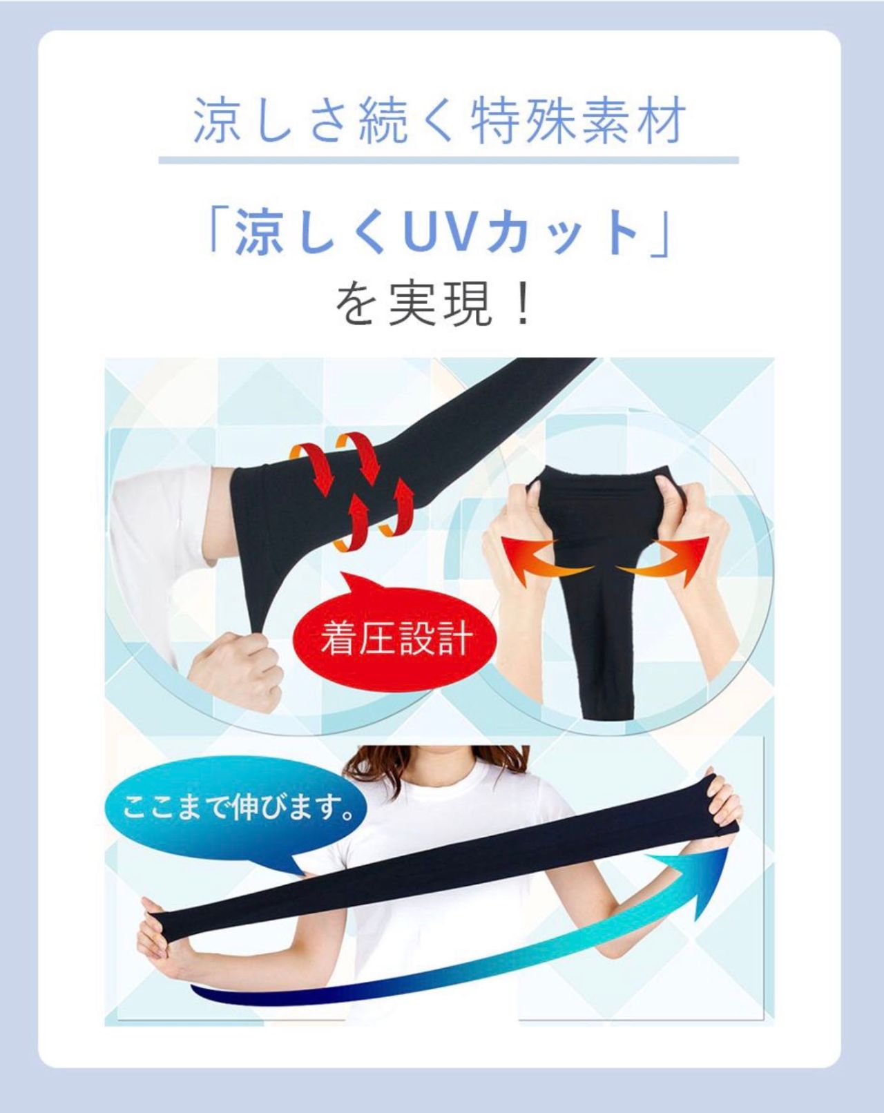 たくさんのお客様からご要望いただき「指付きタイプ」にリニューアル!二の腕から手の甲までしっかりガード!涼しさ続く特殊素材で「涼しくUVカット」を実現!