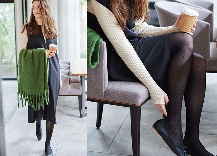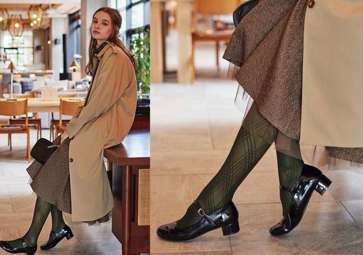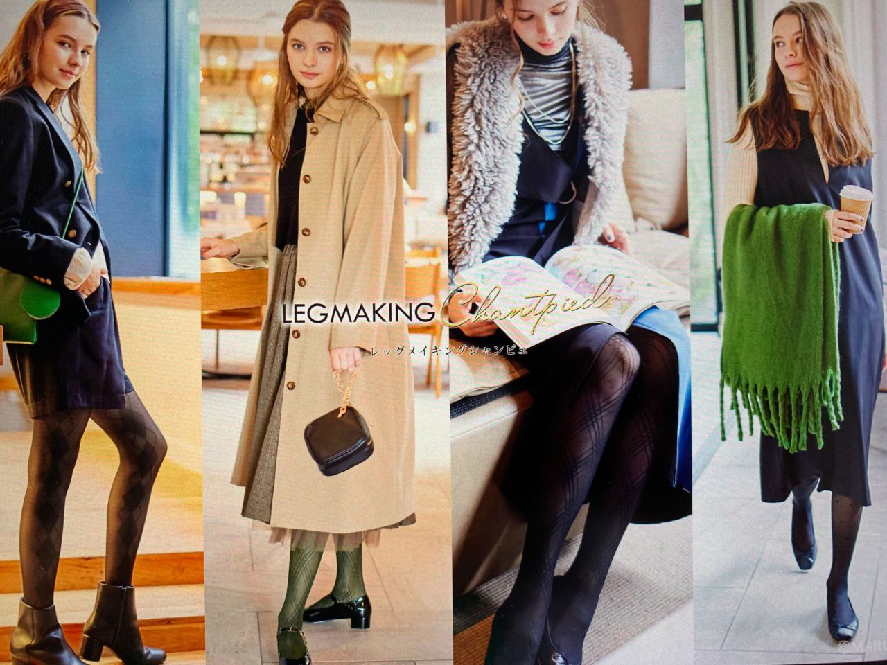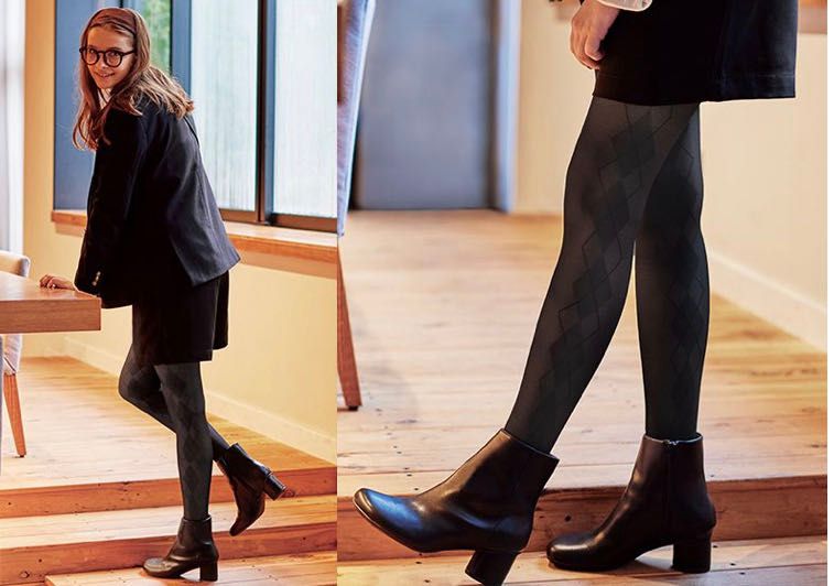 縦長を強調する連続したアーガイル柄で美脚を演出します。