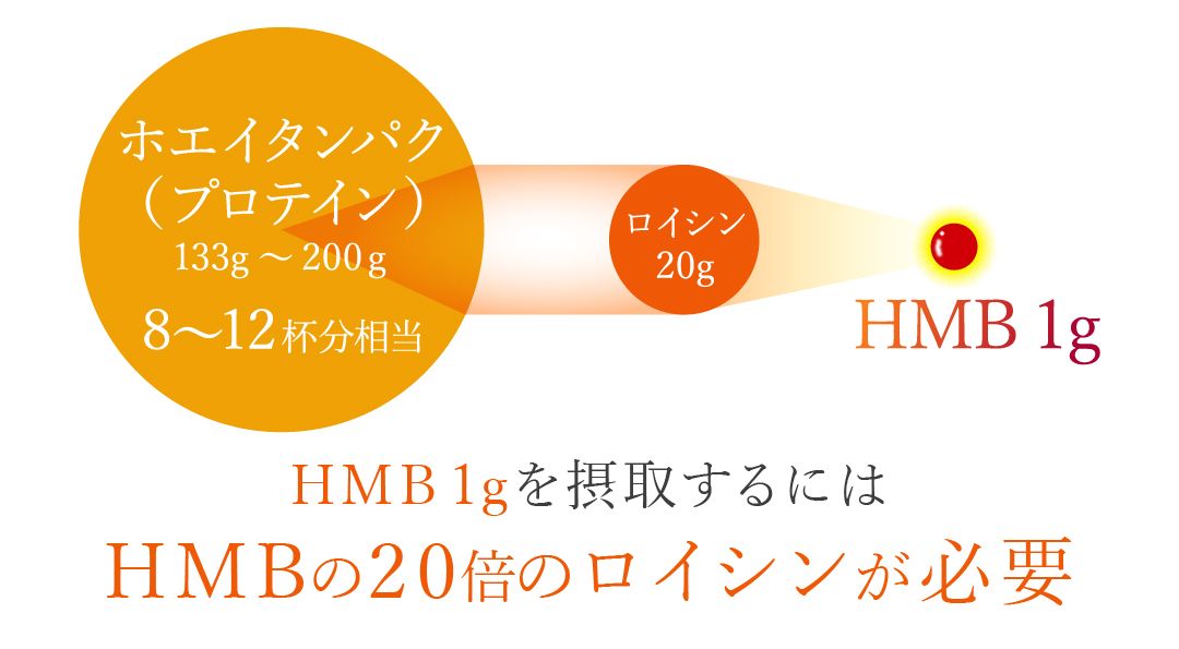 HMB 1gが生成されるのに必要なロイシンは約20gと言われており、