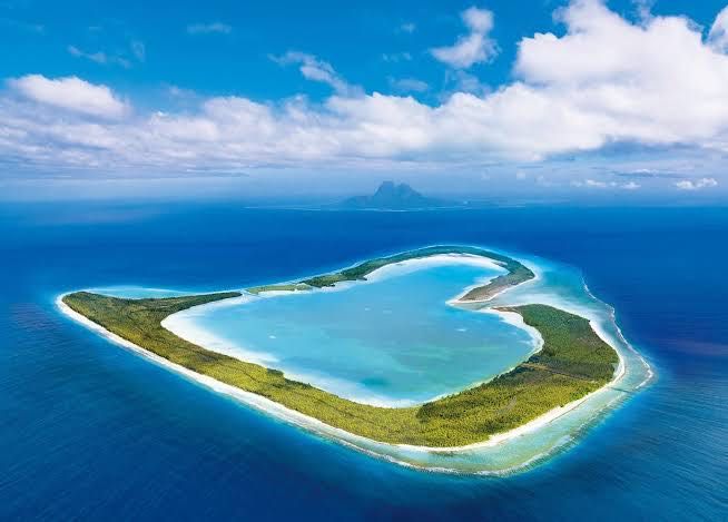 永遠に広がる青い海に浮かぶオープンハートの形をした島を