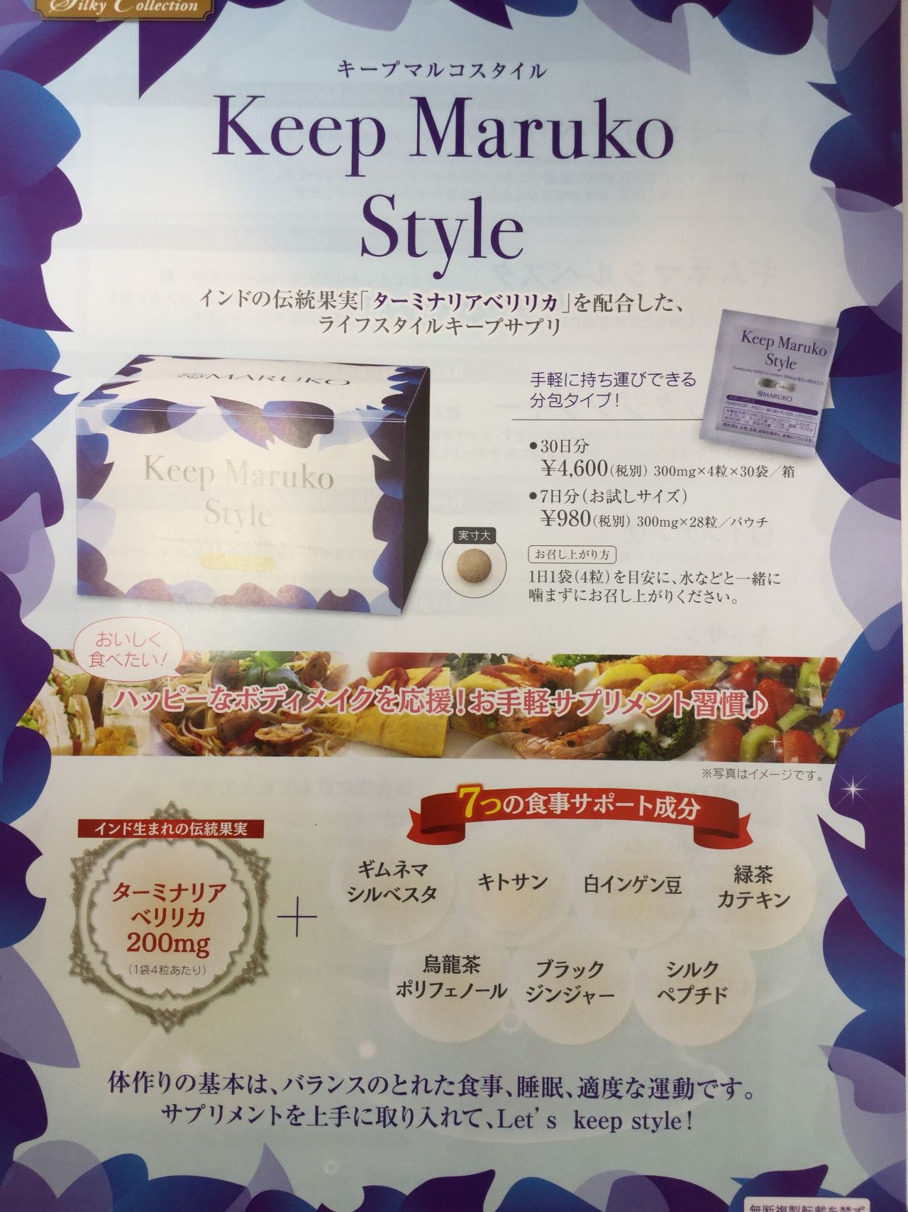 インドの伝統果実ターミナリアベリリカ7つの食事サポート成分を配合したサプリメントです。