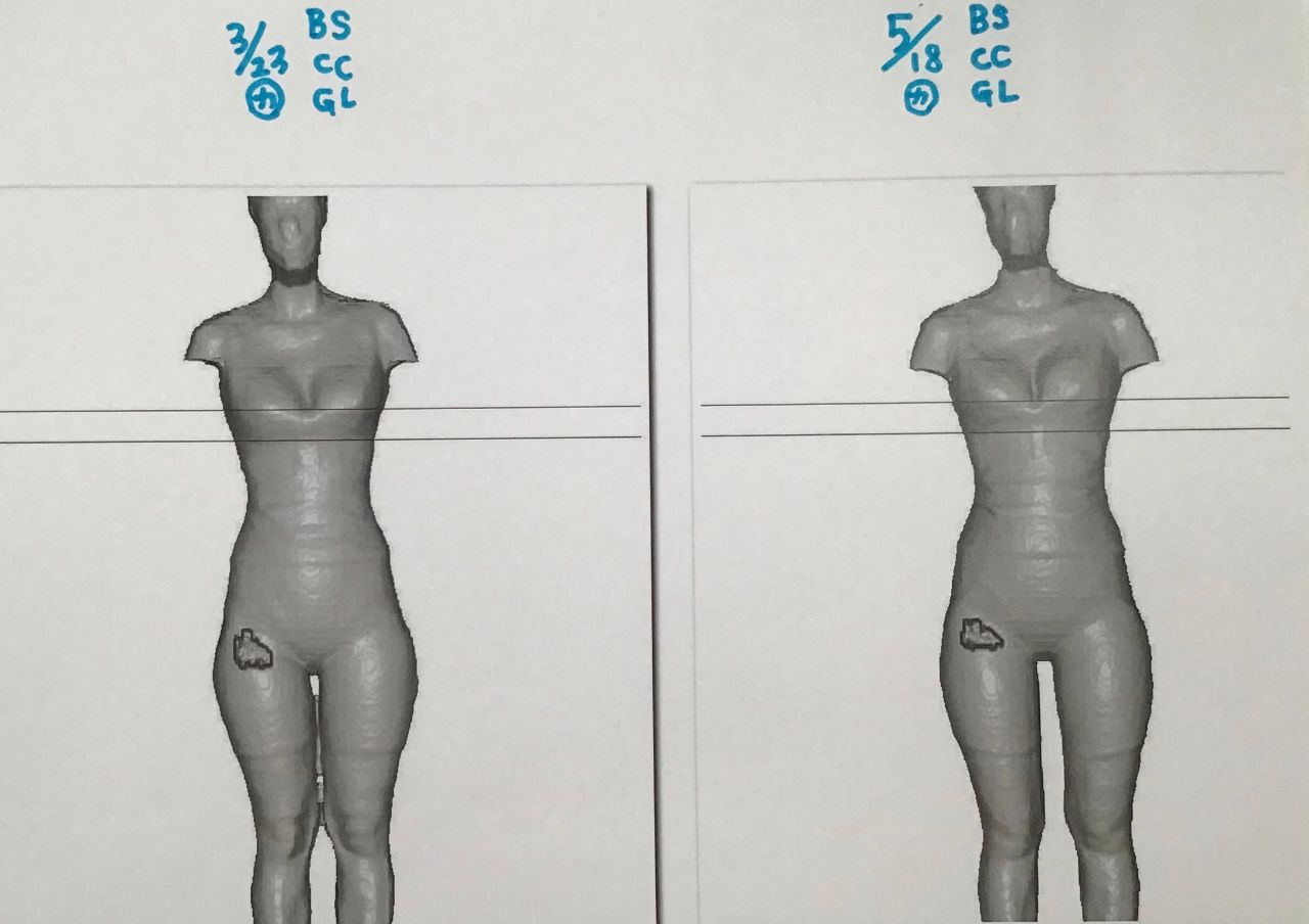 見てください。この変化すごくないですか?気にしていた下半身も変化して、足の隙間が初めはエッフェル塔だったのが、凱旋門のように隙間ができてきたんです!!