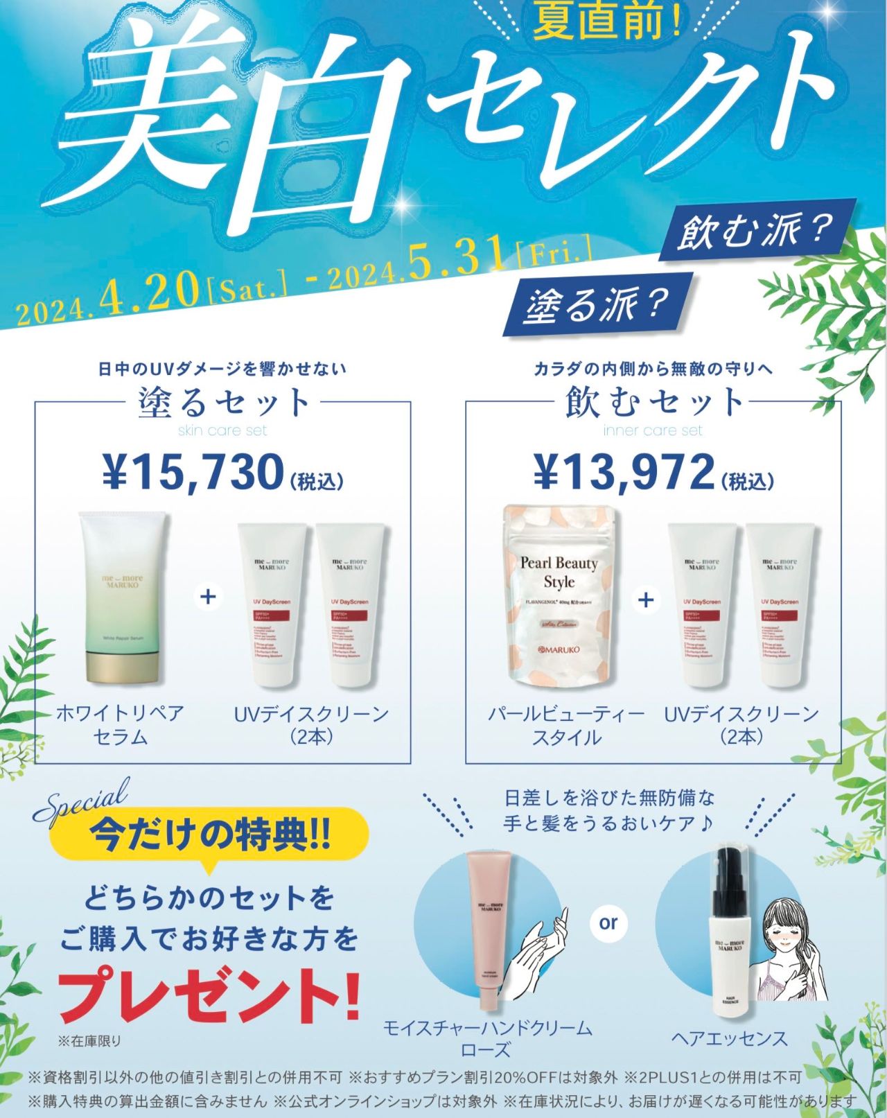 今の時期から、しっかりケアして、お肌の中と外から美肌ケアしましょう。