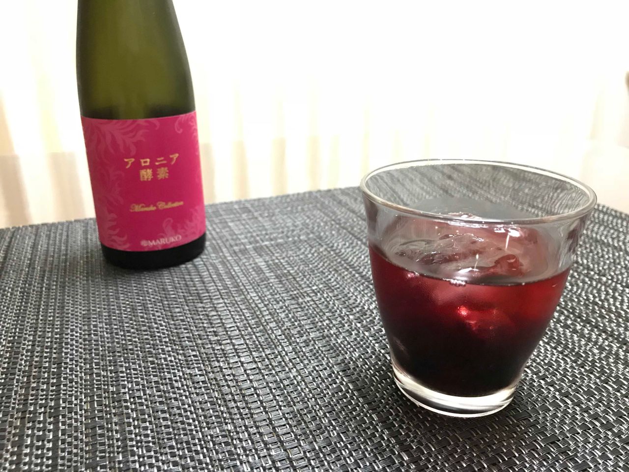 水割にしたアロニア酵素に氷を入れて
