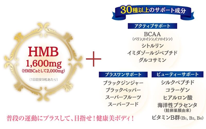 HMBの他にも30種類以上のサポート成分が配合されているのが嬉しいですね♪