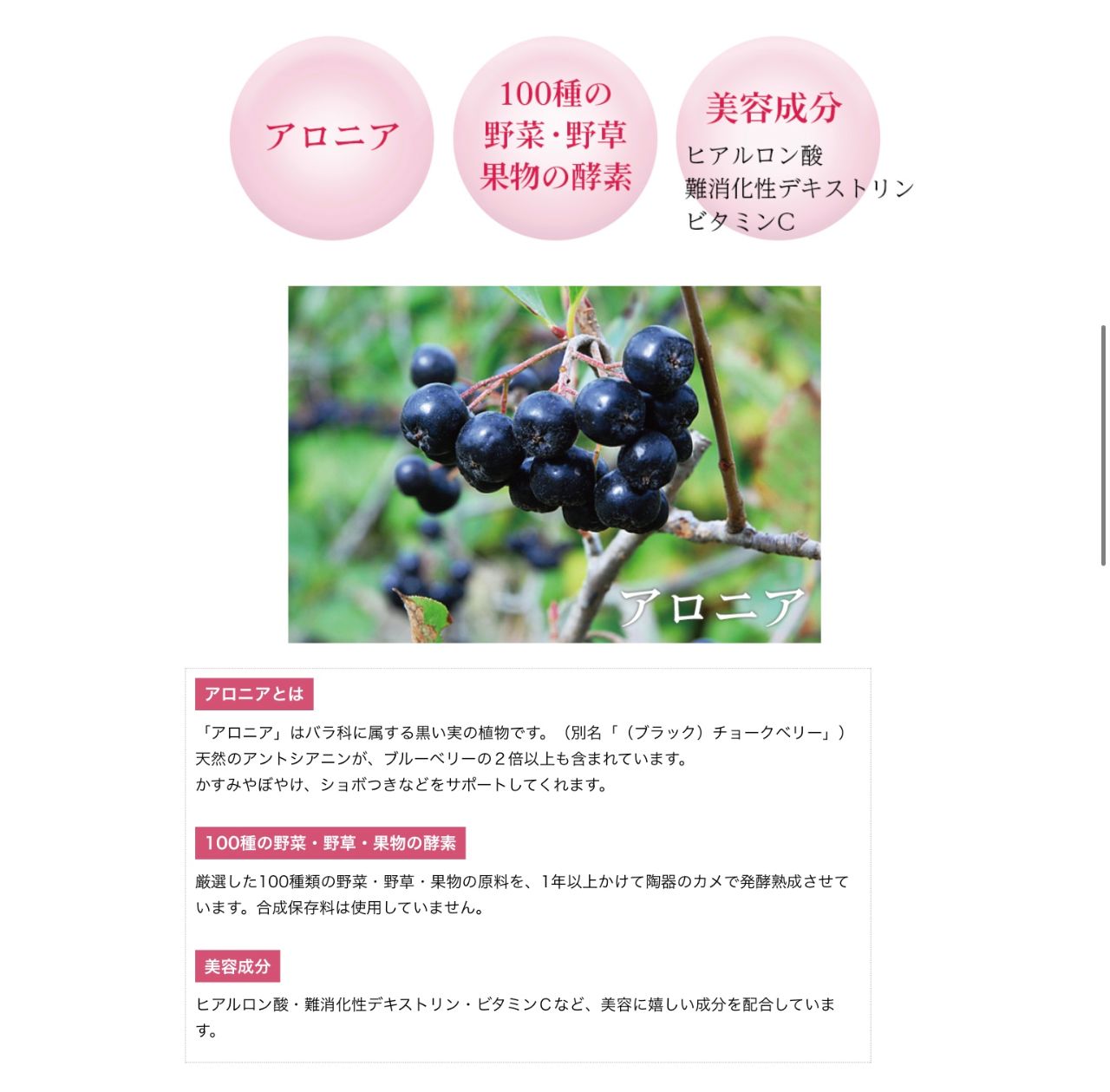 100種の野菜などの酵素やヒアルロン酸等の美容成分を使用しているため、
