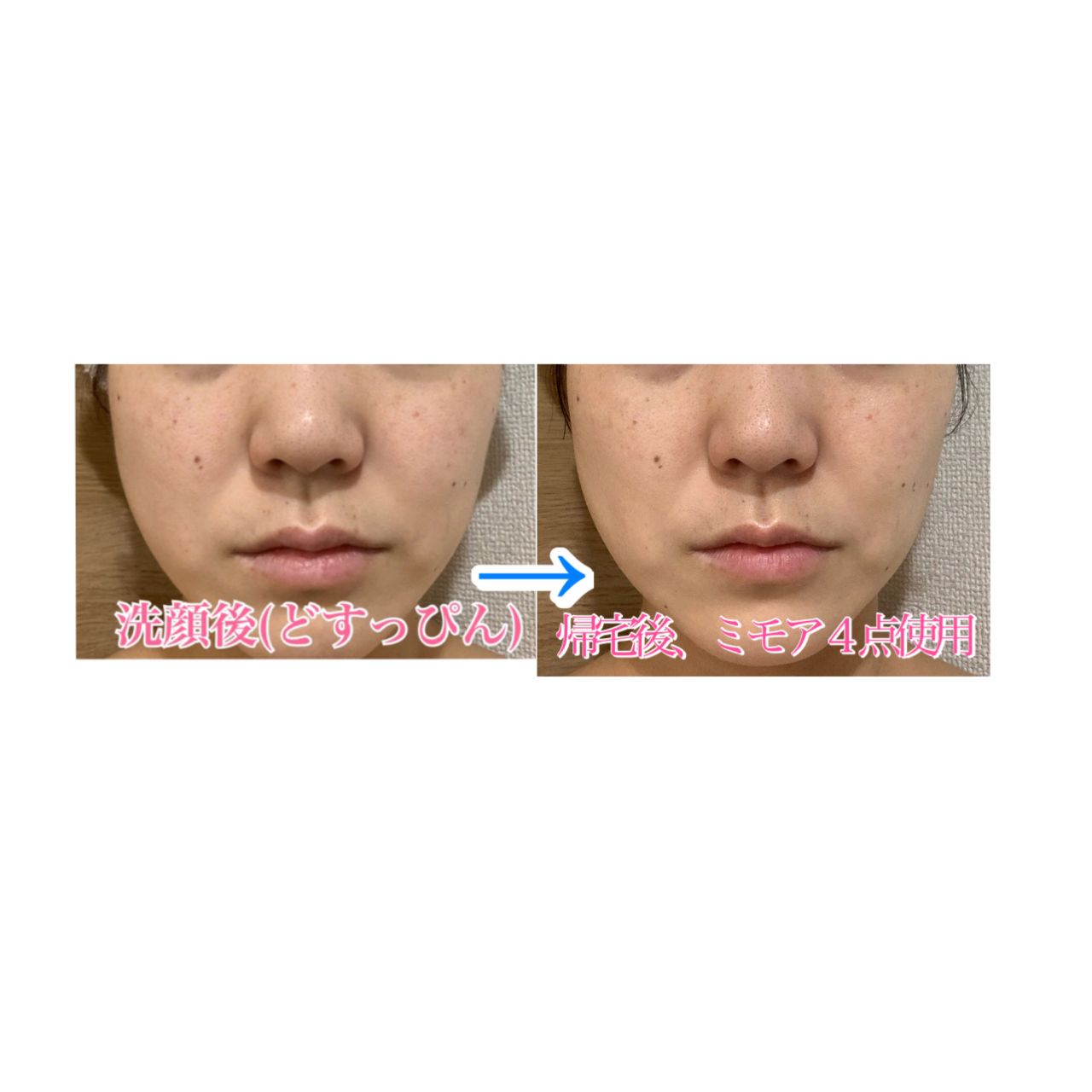 そして、このまま顔半分にメイクアップベースを使用したまま1日を過ごして、家でミモアマルコの