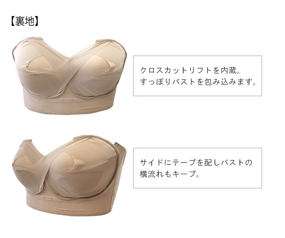 締め付け感を感じさせず睡眠を妨げない優しいフィット感。ワイヤー、ボーンを使用せず、テープも肌あたりの良いソフトなものを使用しています。