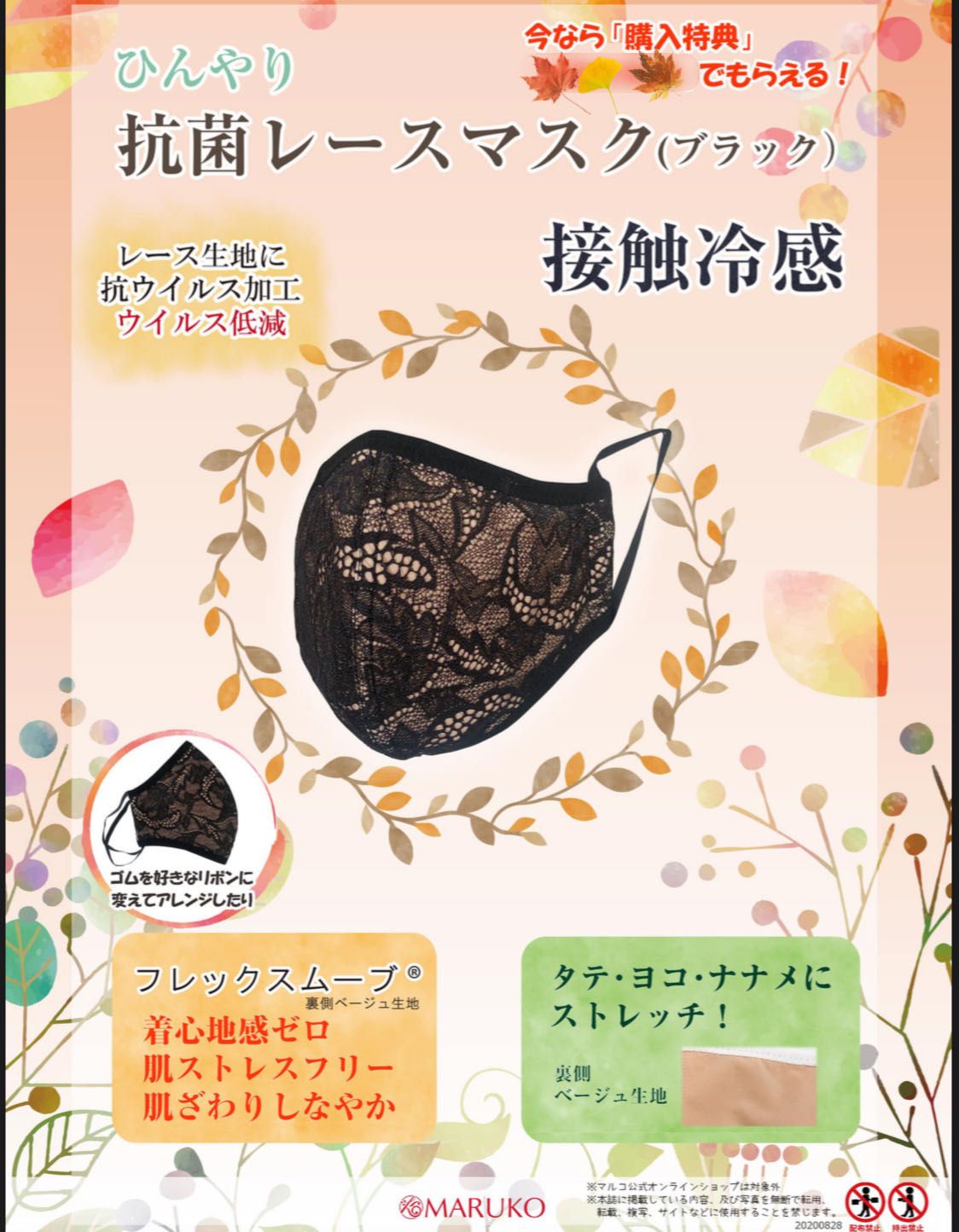 そんな私達の生活に必需品のマスクですが、先月からマルコオリジナルのひんやり抗菌レースマスク接触冷感のブラックが、数量限定特典であるのはご存じでしょうか?