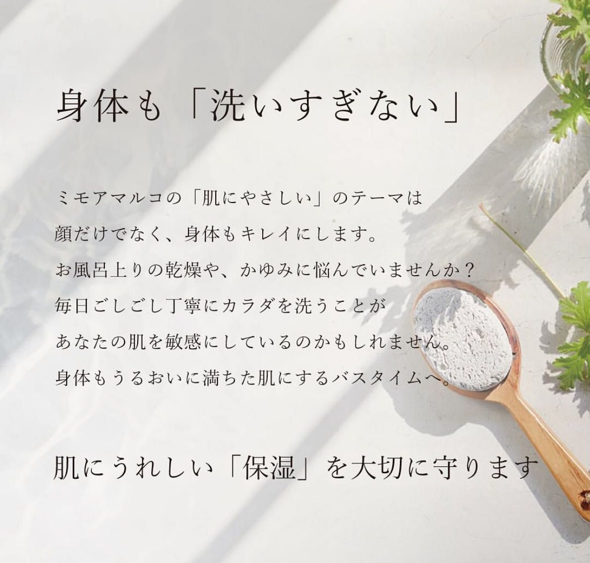 優しいがテーマのミモアマルコのボディウォッシュで初夏のお肌を整えるのはいかがですか。