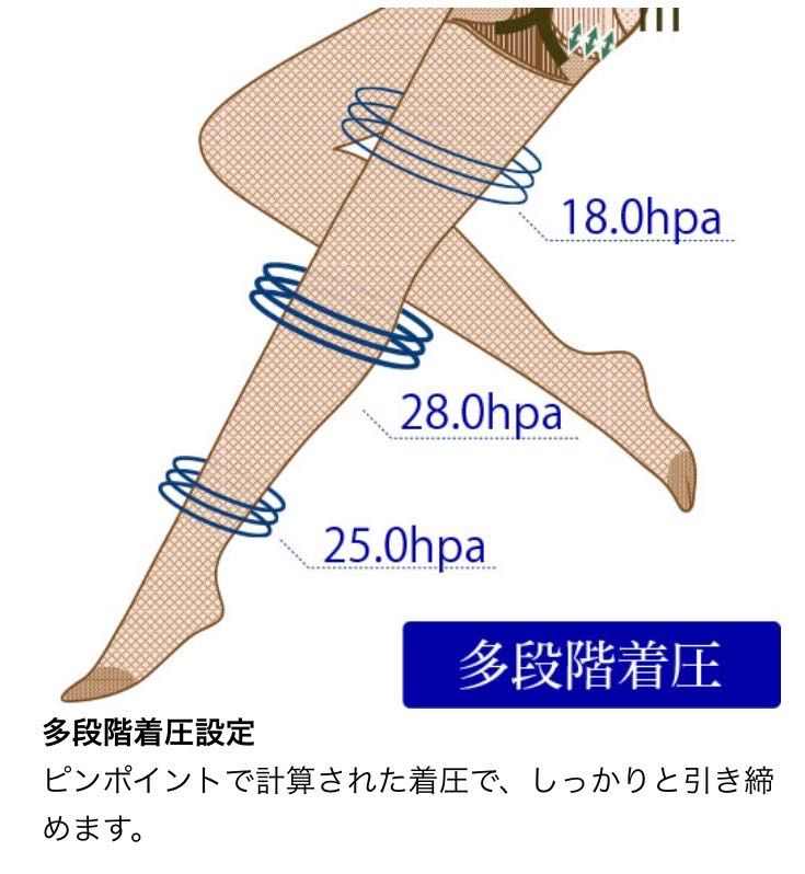 足首、ふくらはぎ、太ももと着圧が段階で変化している事で、浮腫みにくさを感じています。
