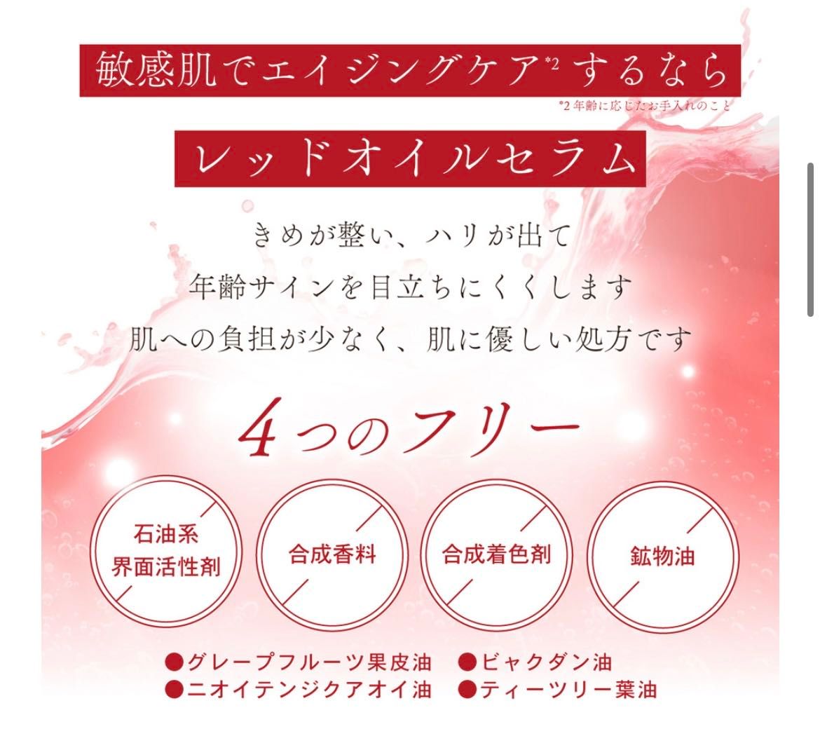 私も今年、初めてこのレッドオイルセラムを使ってみましたが、全くベタつかずサラッとした使い心地なのに、保湿されている感じがとっても好きです!