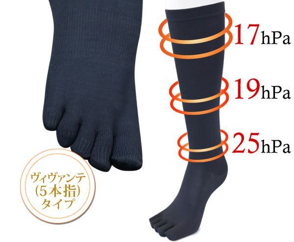 普段のおしゃれにも活用しやすい膝下までのデザインです!ヴィヴァンテタイプは指が一本ずつ離れていてより循環を促してくれます!