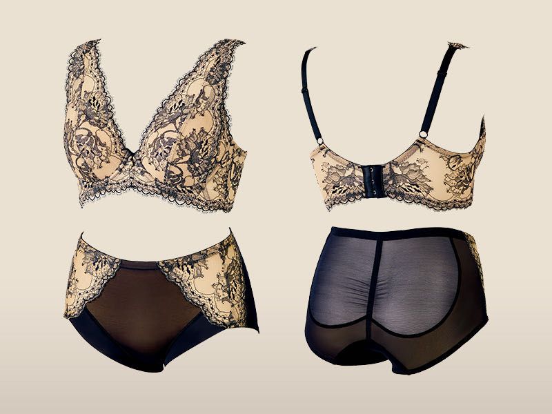 繊細なリバーレースを贅沢に使用した、ヌーディーで高級感あふれるデザインの補整ランジェリー。