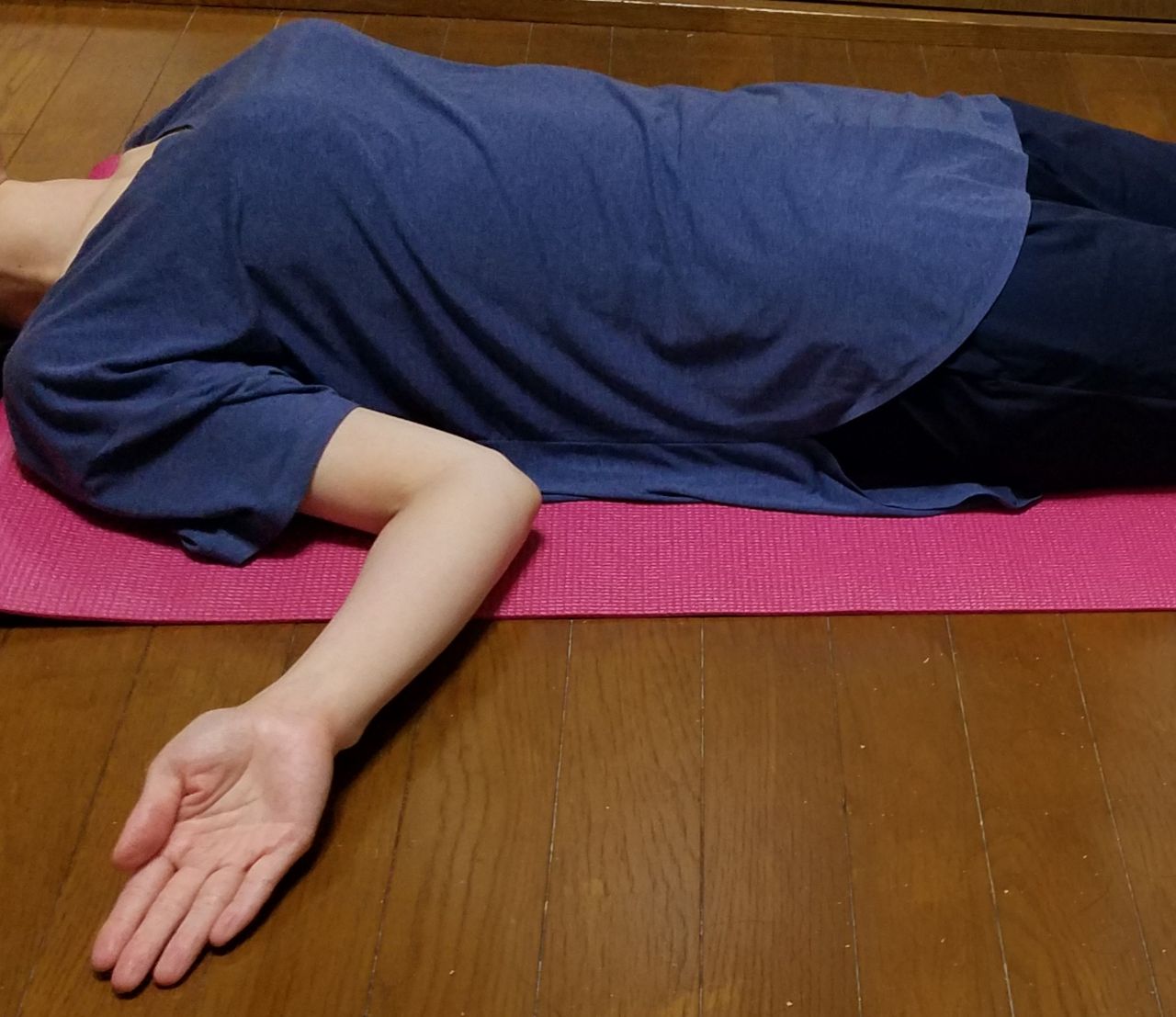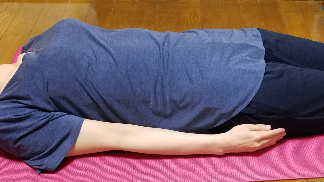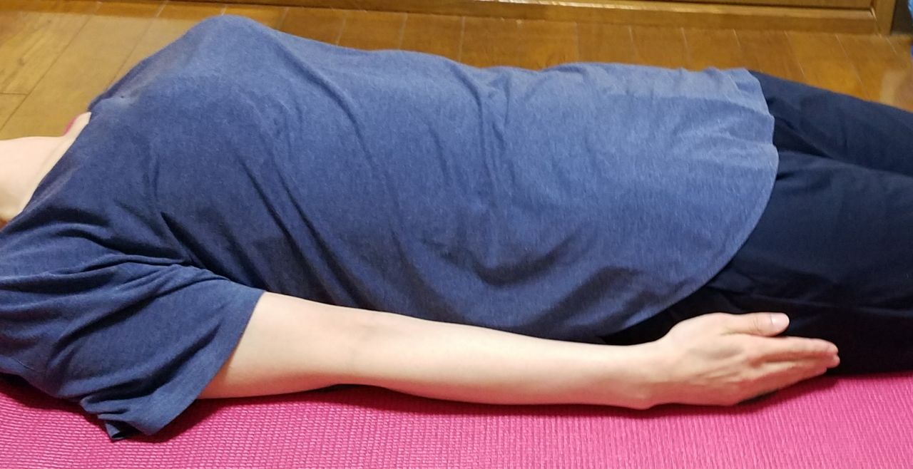 ① 仰向けに寝ます